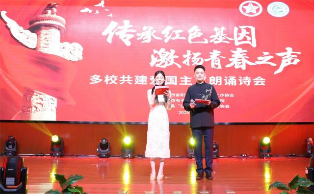 为深入学习贯彻党的二十届三中全会精神,庆祝中华人民共和国成立76周年、抗日战争胜利80周年及红军长征胜利90周年,5月23日下午,由江西省职业院校共青团工作协会主办、江西电子信息职业技术学院承办、南昌“让爱回家”志愿者协会协办的“传承红色基因激扬青春之声”多校共建爱国主义朗诵诗会在江西电子信息职业技术学院学术报告厅隆重举行。昌东片区6所职业院校团委师生代表400余人齐聚一堂,共同见证这场红色文化盛会。